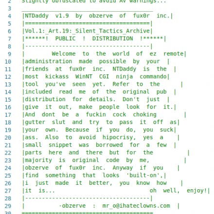 The “NTDaddy” web shell was first developed at least 18 years ago by a hacker named “obzerve” who worked with the hacker group fux0r inc. It’s widely available, including in this GitHub repository containing a collection of web malware. If you scan the ntdaddy.aspx file on VirusTotal, 36 out of 59 anti-virus programs flag it as malicious, generally classifying it as a web server backdoor.