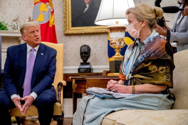 Coronavirus coordinator Deborah Birx said data-reporting would soon go back to the CDC from the current ‘interim system.’ Dr. Birx with President Trump in the White House Oval Office on Aug. 5.