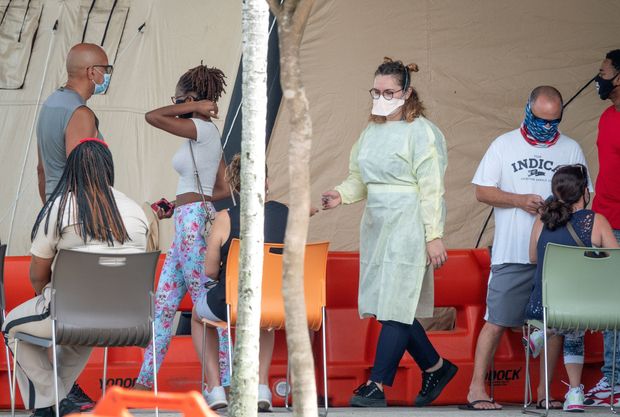 The government’s reversal comes after reports that the new system has been plagued by delays and inconsistencies in data. Patients waited to enter a hospital in Hollywood, Fla., in July.