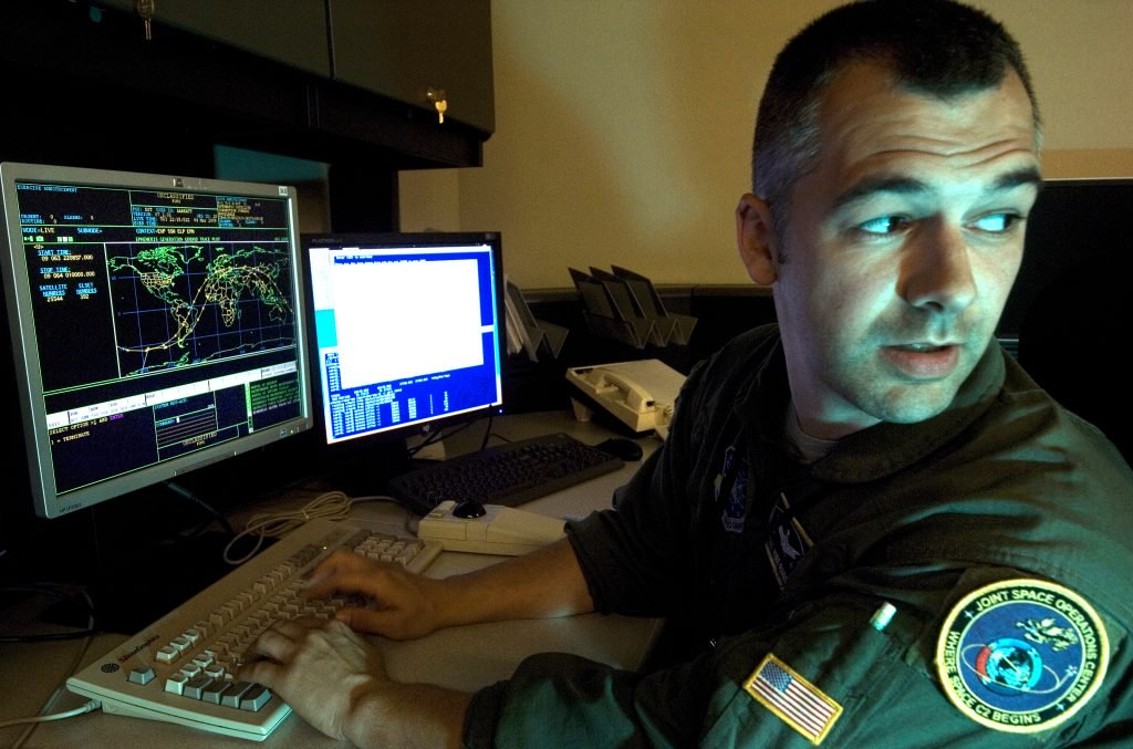 A sensor analyst at work at Joint Space Operations Center, Vandenberg Air Force Base, California