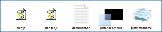 Indeed, if we turn on the View > File name extensions option (highly recomended!) in File Explorer, you’ll see the dangerous truth behind those “scroll icon” files that looked above as though they were called alert and alert.txt: