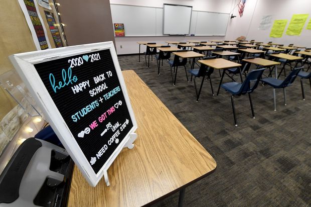A classroom at Walter Johnson Junior High School in Las Vegas on Aug. 24. The Clark County School District in Las Vegas has about 320,000 students.